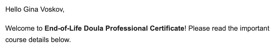 I read, I watch, I listen to, I study texts of loss and grief. I always have. And lately, after writing my own book, after listening to Moth stories and podcasts, and watching documentaries, and reading poetry, I have recognized a need to get even closer to death and dying. And today, December 4, 2025, I registered for a course offered by the University of Vermont that will allow me to earn a certification as an End-of-Life Doula.